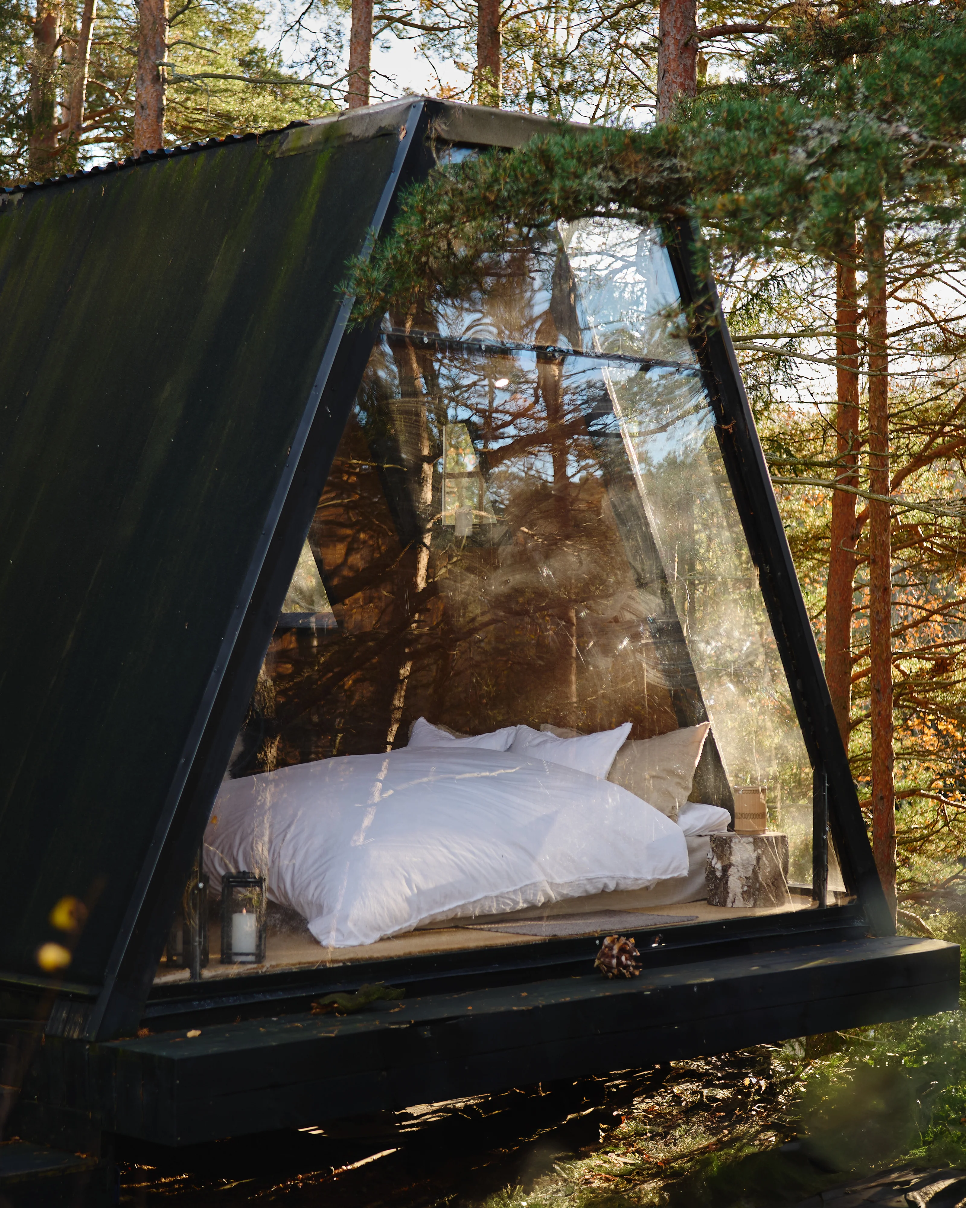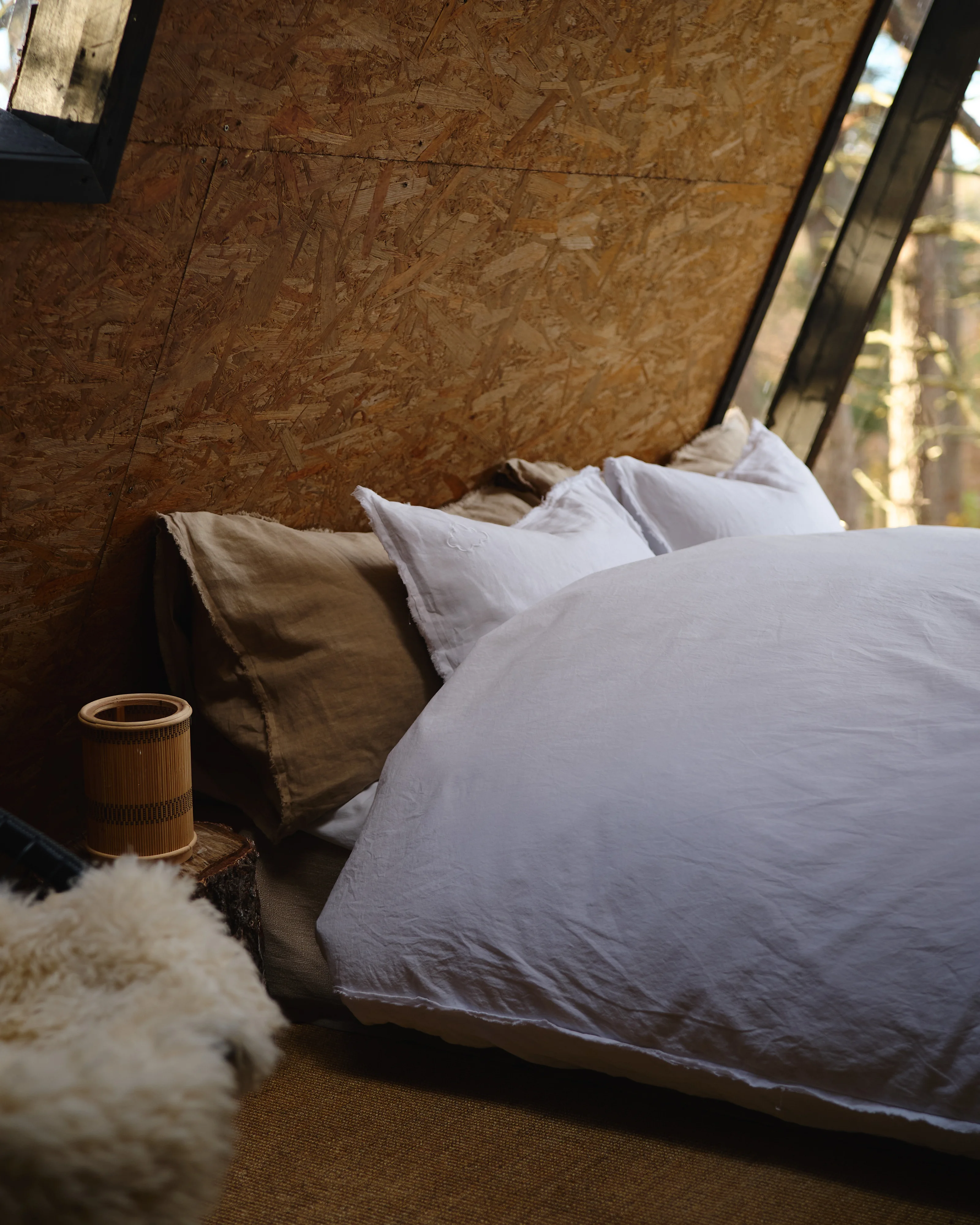 Vergiss nicht, die natürliche Schönheit der Umgebung in die Einrichtung der Hütte einzubinden, indem du passende Textilien und Materialien wählst. Grüntöne, rustikales Holz, Schaffell oder warum nicht massiver Stein?