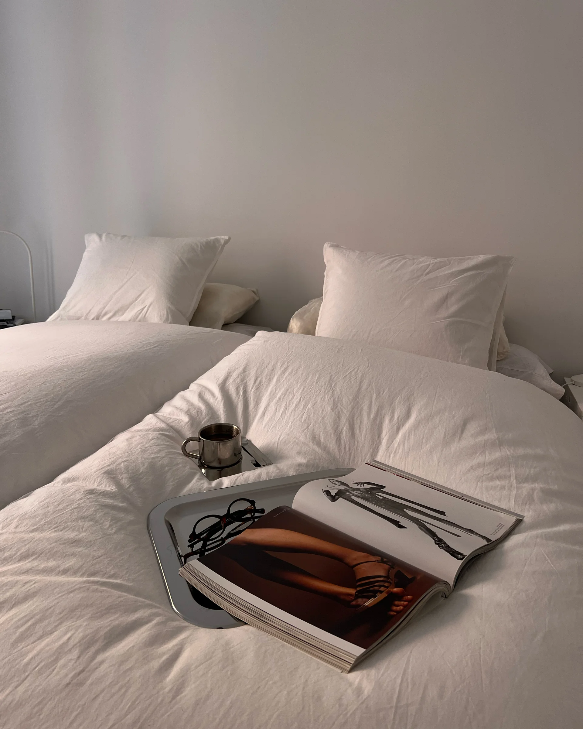 Gönn dir den direkten Weg zu einem Schlafzimmer voller verführerisch flauschiger Daunendecken, weicher Kopfkissen und romantischer Bettwäsche von Happy Fluffy Cloud, gekrönt mit Premium-Loungewear von Nufferton.