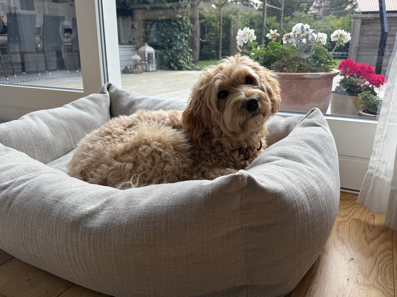 Unglaublich weiches und schönes Hundebett. Auch Hedvig gefällt es sehr gut! 😍 Toll, dass es das Hundebett im gleichen Stoff wie das Sofa gibt!