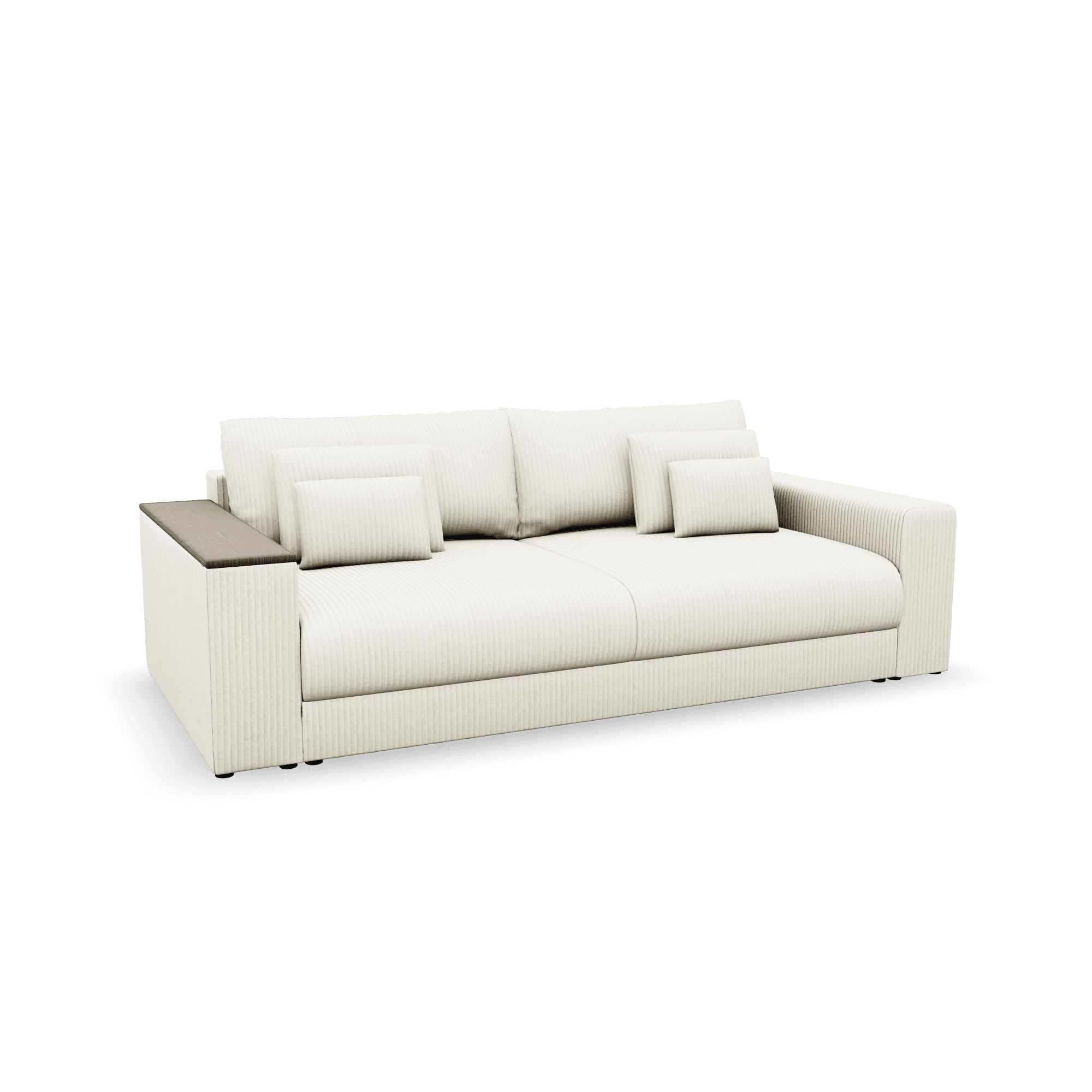 Björnen 2.0 lässt sich unkompliziert vorziehen (170 cm Breite) und hat oben drauf noch ordentlich Stauraum unter der Sitzfläche und in der Armlehne mit Deckel. Auf diesem Sofa einzuschlafen? Pure Entspannung – du chillst gemütlich, und deine Gäste schlafen super.