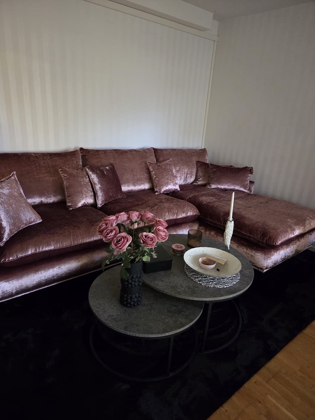 ÄLSKAR min rosa soffa, väl värt att vänta på ❤️