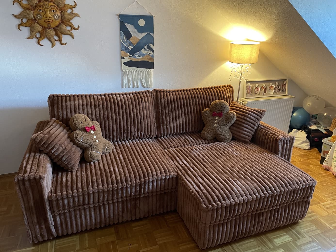 Hallo Agneta, oh, was für ein tolles Foto, vielen Dank fürs Teilen! 🥰 Es freut mich sehr zu hören, dass dir dein Gorilla so gut gefällt und die leuchtenden Polster genau richtig sind. Es klingt unglaublich gemütlich, ihn in zwei Chaiselongues für gemeinsame Filmabende umzubauen 😍🛋️ Ich hoffe, er beschert euch noch viele schöne und gemütliche Momente! 💛 Liebe Grüße, Nils 🌻
