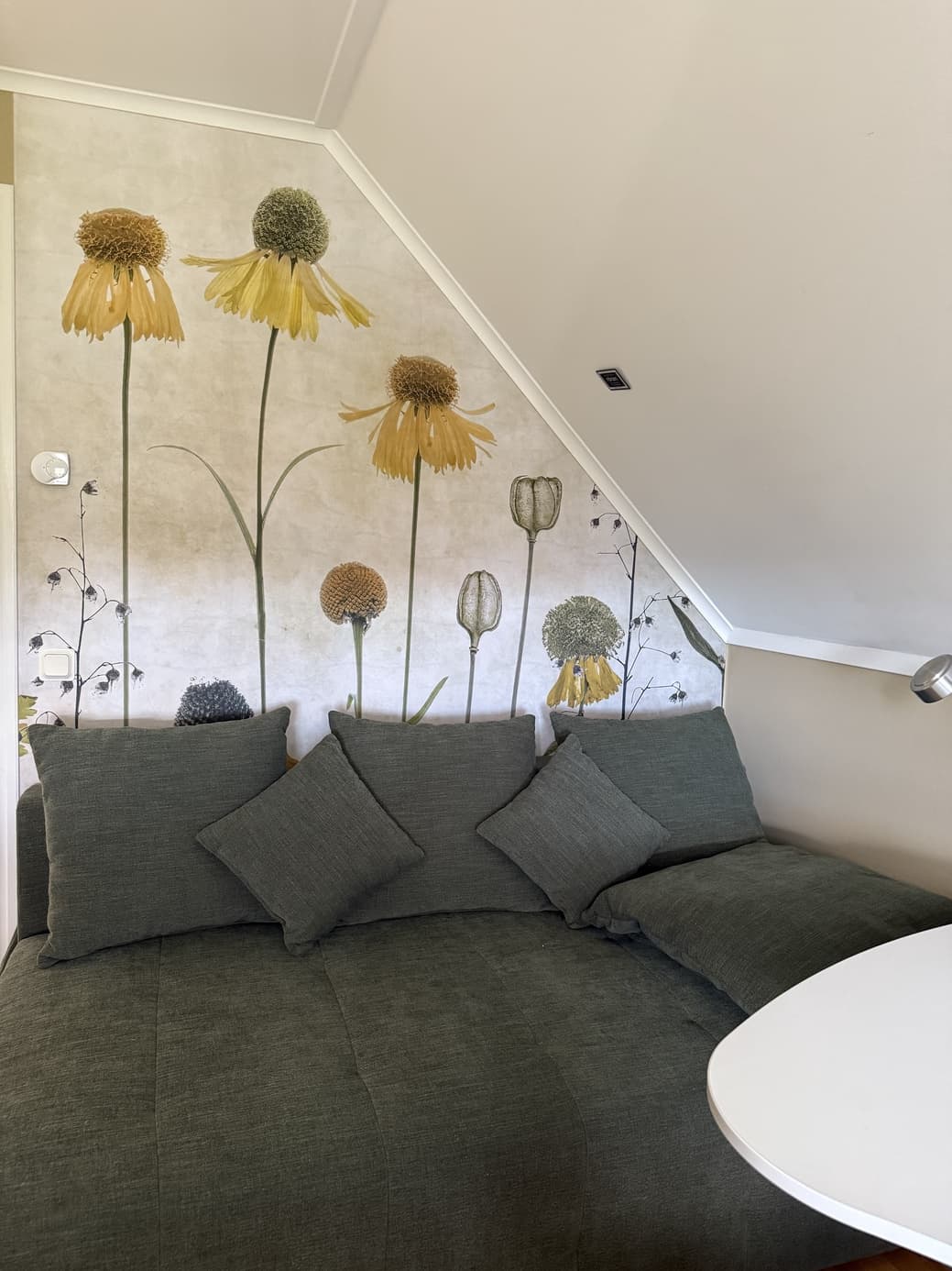 Ich habe mich über gute Schlafsofas beraten lassen und suchte eins, das maximal 2 m lang ist und in den Türrahmen eines Gästezimmers passt. Ich habe dort tapeziert, wo ich ein passendes Sofa wollte, auf dem Kinder und Enkel bequem schlafen können. Jetzt steht mein schönes grünes Sofa mit vielen schönen Kissen. Einfach zu montieren, nur das Wenige, das ich brauchte. Tolle Aufbewahrung für Bettdecken und Kissen. Ich habe mir auch eine Matratzenauflage gekauft. Wer weiß, vielleicht gibt es noch eins, für ein anderes Zimmer …