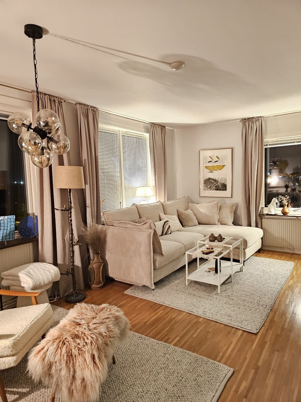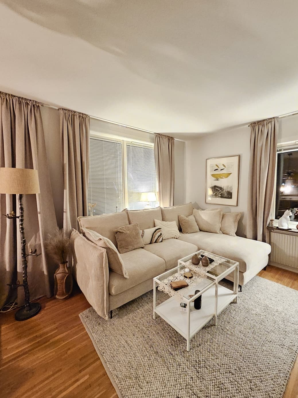 Den är skön och inte för ”vräkig” och stor. Passar bra in hemma hos oss. Fin service från Sweef då det fattades delar men dessa kom två dagar efteråt så soffan kunde sättas ihop innan helgen. Fick även kompensation. Vi är nöjda :-)