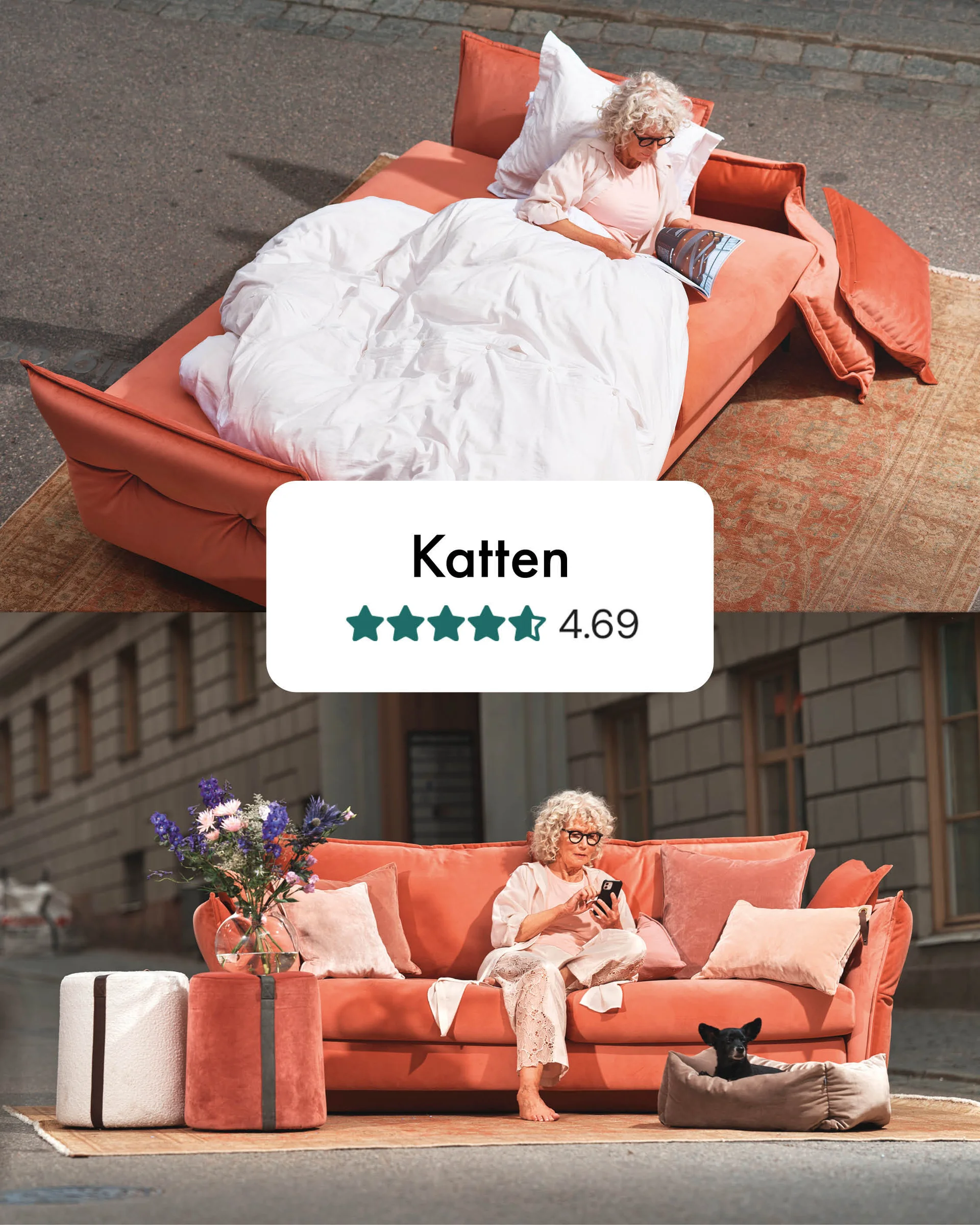 - Katten ist ein Bestseller! Vielleicht weil es uns gelungen ist, ein Schlafsofa zu entwickeln, auf dem man bequem sitzt und das gleichzeitig schön anzusehen ist?