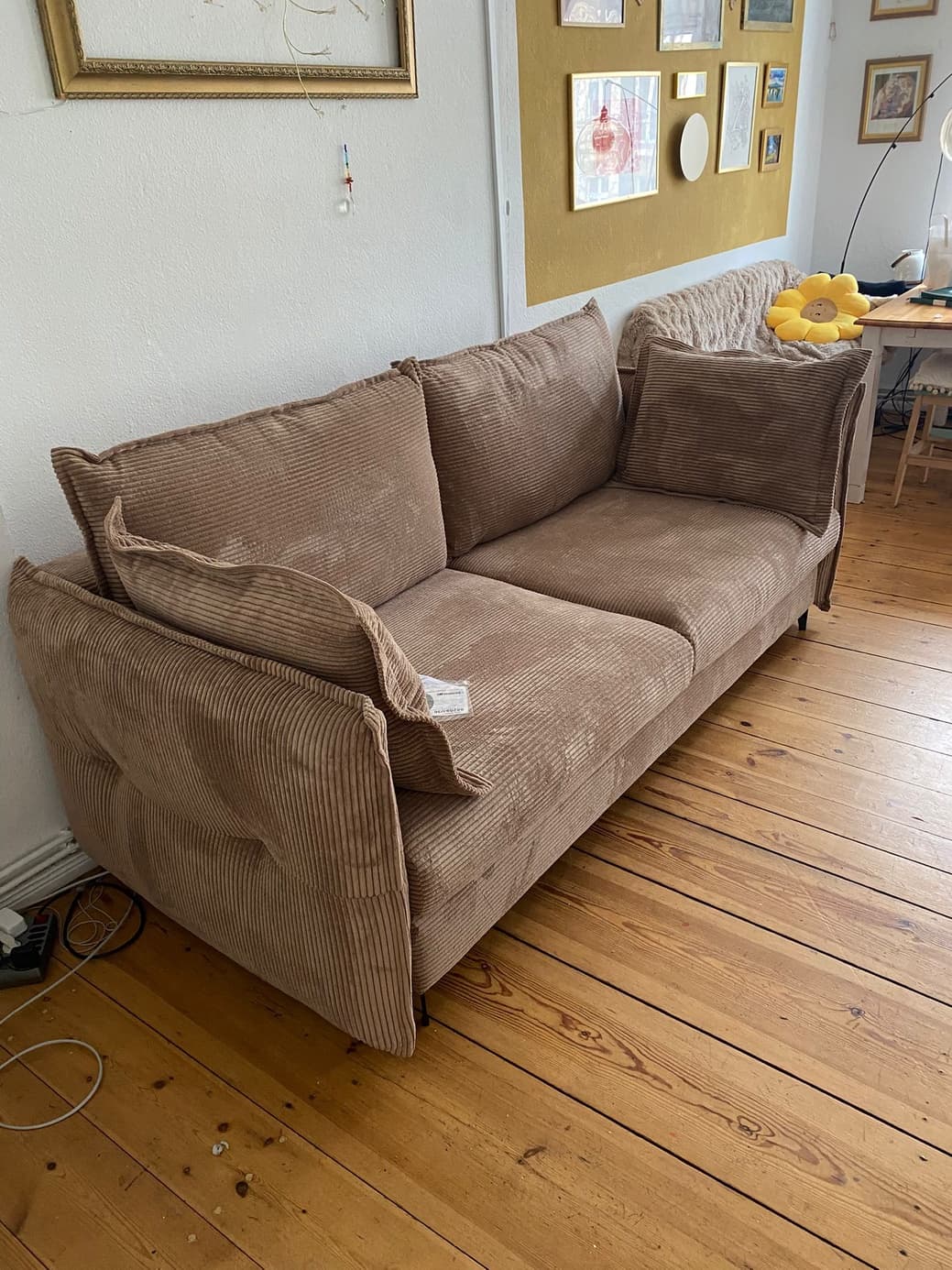Das Sofa ist herrlich groß, elegant, bequem und praktisch. Perfekt. Riecht gut nach Holz. Zum Schlafen mit zwei Handgriffen bereit. Ein Topper macht das Liegen noch himmlischer.