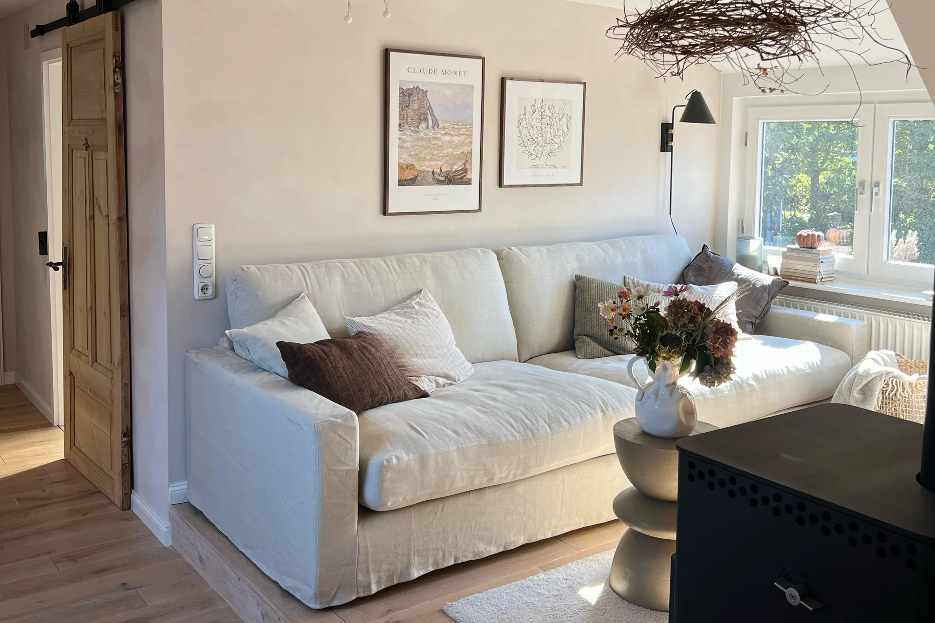 Wir lieben unser neues Sofa! Bequem, stilvoll und hochwertig, sowohl bei den Kissen als auch beim Stoff. So glücklich!