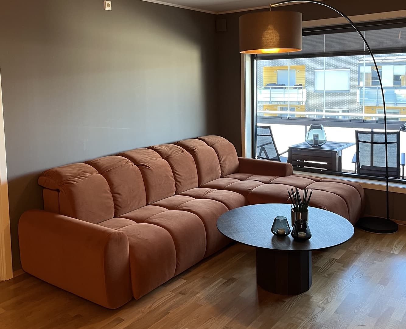Det eneste minuset er at det er litt vanskelig å åpne sovedelen og lagring under sjeselong da sofa’n flytter lett på seg(sklir på gulvet).