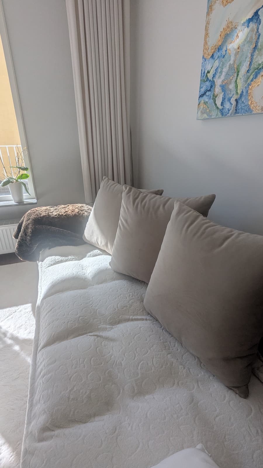 Super zufrieden mit unserem neuen Vargen in der Farbe Sand 2/Salvador 2. Passt perfekt zu unseren beigen Vorhängen und weißen Matten in einer hellen Wohnung mit Südlage. Bequem, stabil und flexibel als Schlafsofa! Es wird in Zukunft viele Filmabende bescheren und den ganzen Raum aufwerten! Probiert auch Lieferung und Aufbau reibungslos! (Ps.: Benutzt eine leicht waschbare Decke für Sitzfläche/Armlehne, die passende Farbe finden Sie unter Kissen.)