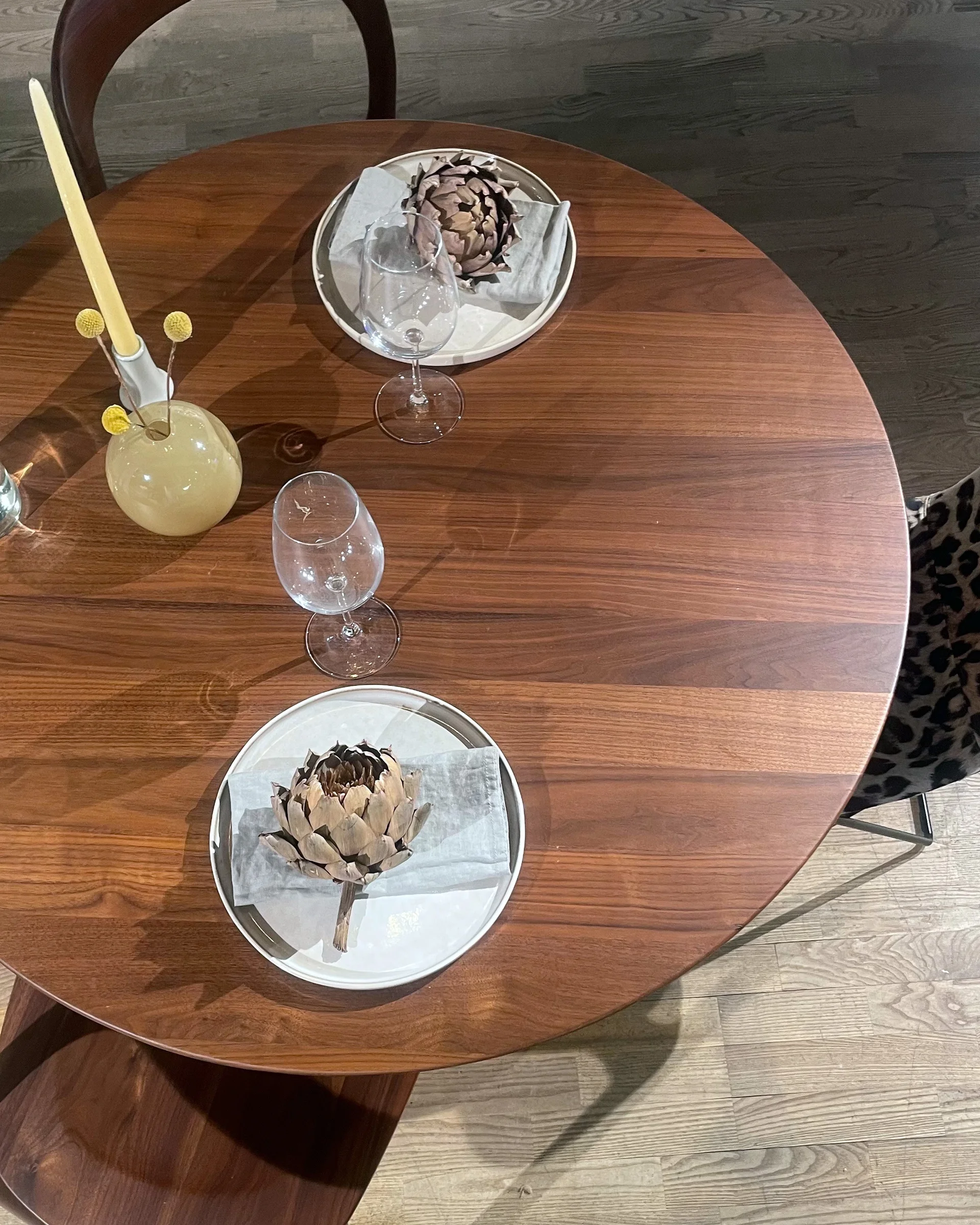 Sind deine Gerichte keine Kunstwerke? Dann lass den Esstisch zum Blickfang werden. Hier sprechen wir nämlich von einem Tisch, bei dem der Möbeltischler besonders gut gelaunt war. Hjorten hat eine Bodenplatte aus schwarzem Stahl, die in wunderschönes Walnussholz übergeht. Ein kunstvoll geschwungenes Tischbein führt zur eleganten Tischplatte, die nur darauf wartet, mit deinen kulinarischen Kreationen geschmückt zu werden. Mit Hjorten bekommst du einen exklusiven Tisch, der Ästhetik und meisterhafte Handwerkskunst in Perfektion vereint.