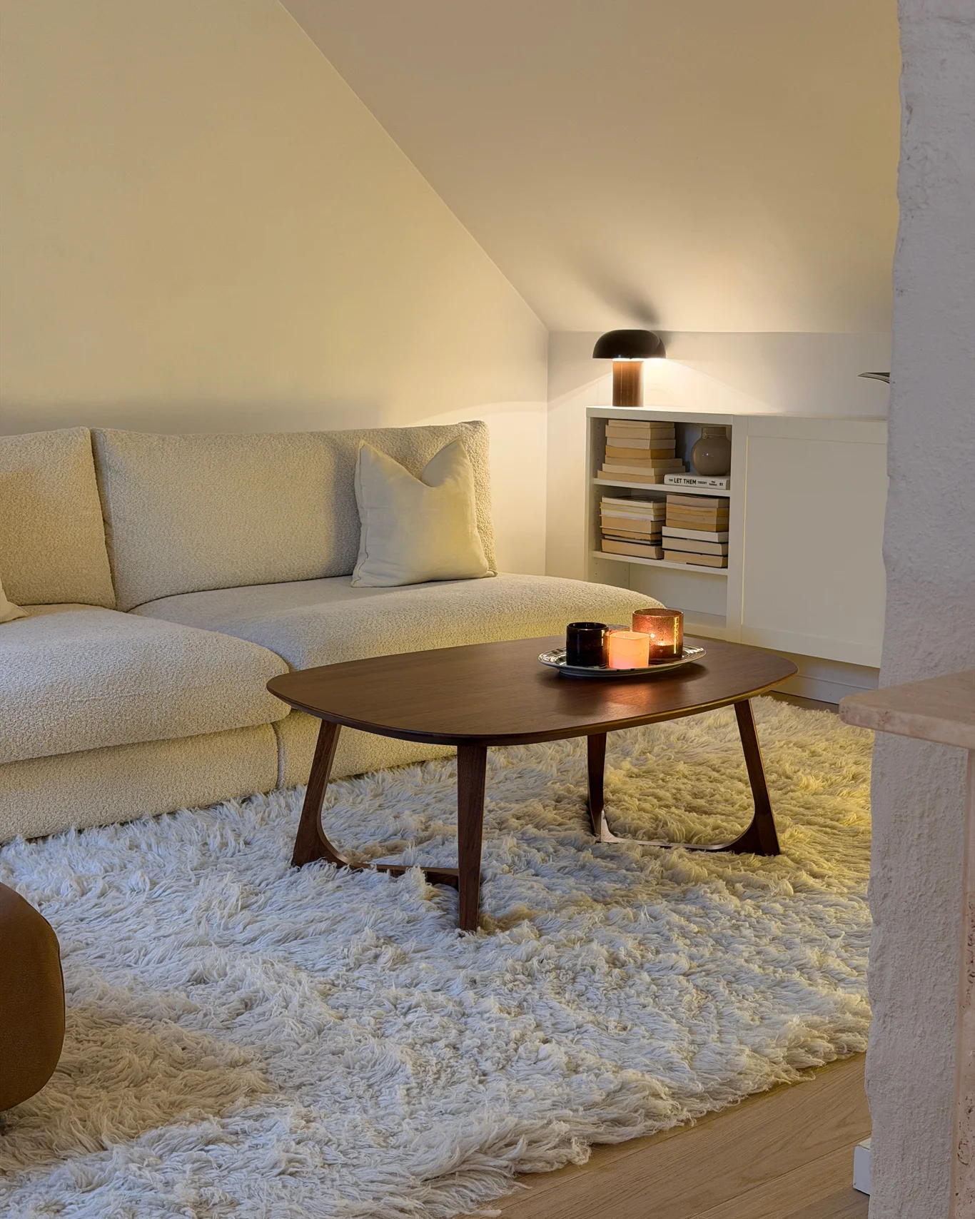 Ich habe mich in die weiche Form und den warmen Holzton verliebt – es fühlt sich solide und zeitlos zugleich an. Es passt perfekt zum Björnen-Sofa.
